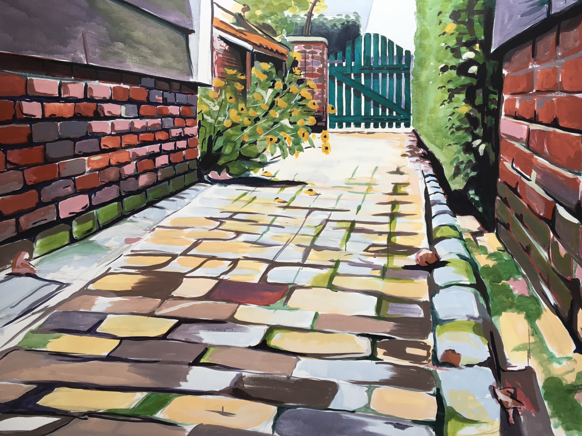 Het gangetje 2020, tempera op linnen, 180 x 130 cm